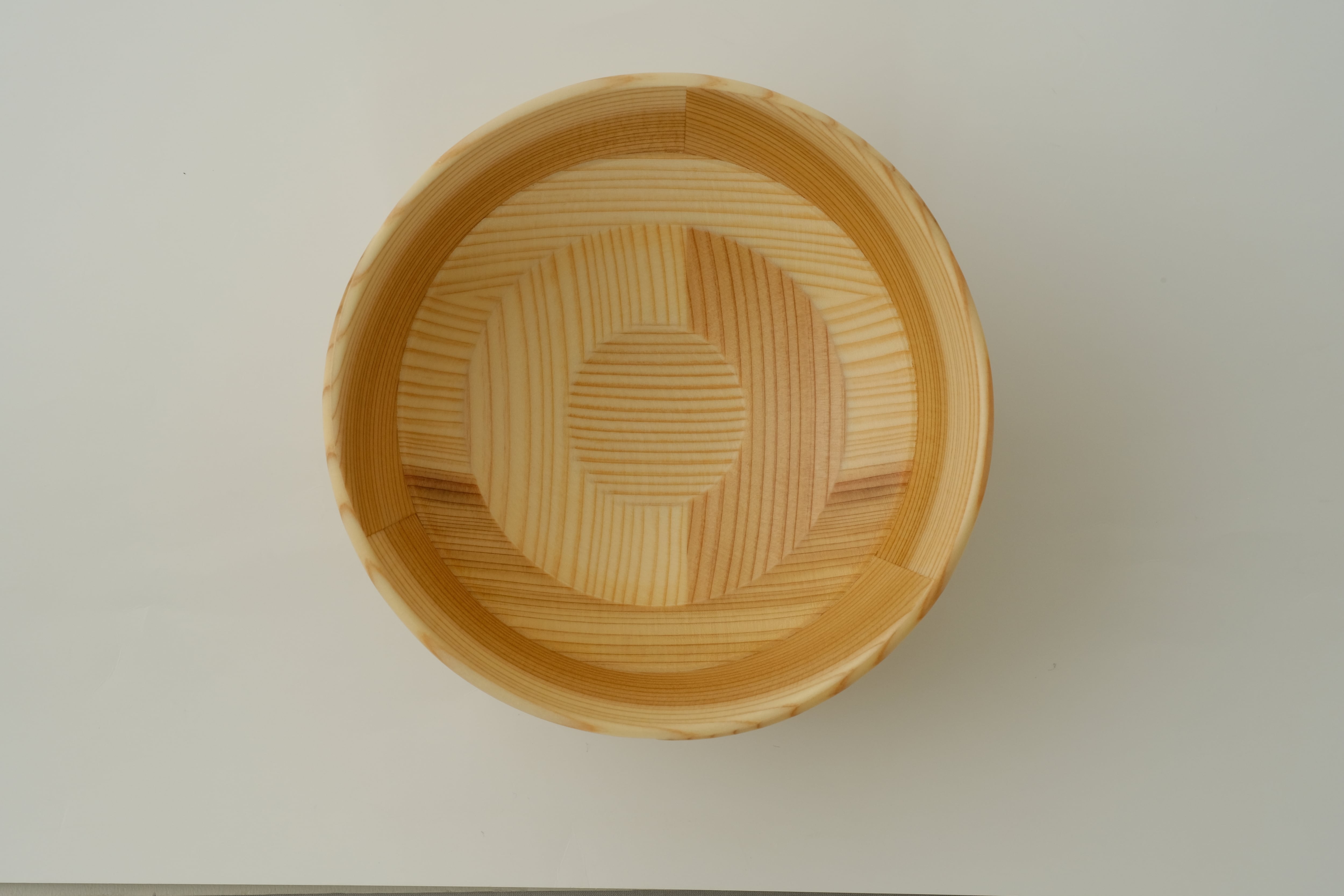 「曲げわっぱ」は、その円が小さいほど曲げるのが難しく、良質な材と高い技術が必要とされます。杉の温かい手触りと驚くほどの軽さを実感いただきたい一品です。