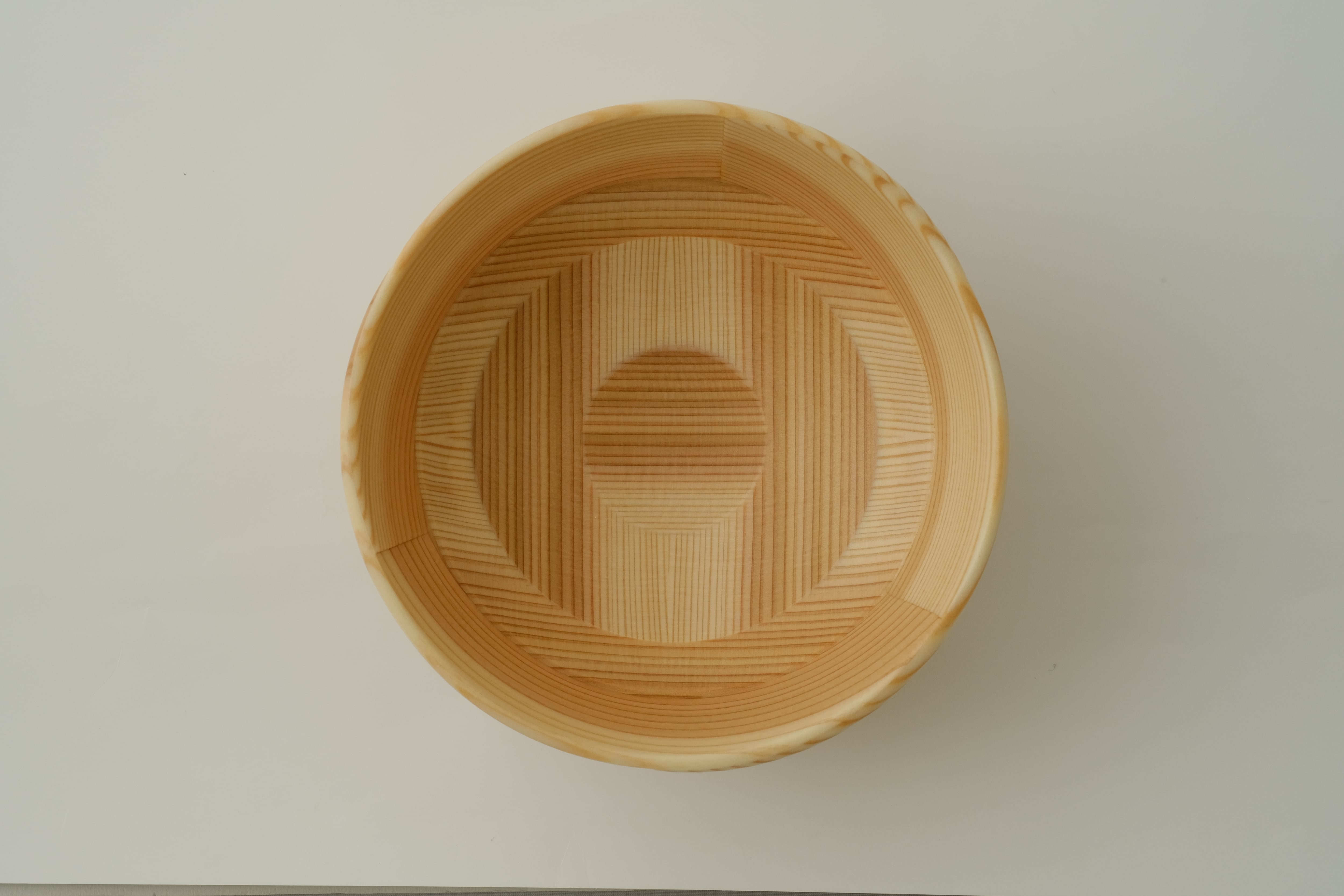 「曲げわっぱ」は、その円が小さいほど曲げるのが難しく、良質な材と高い技術が必要とされます。杉の温かい手触りと驚くほどの軽さを実感いただきたい一品です。
