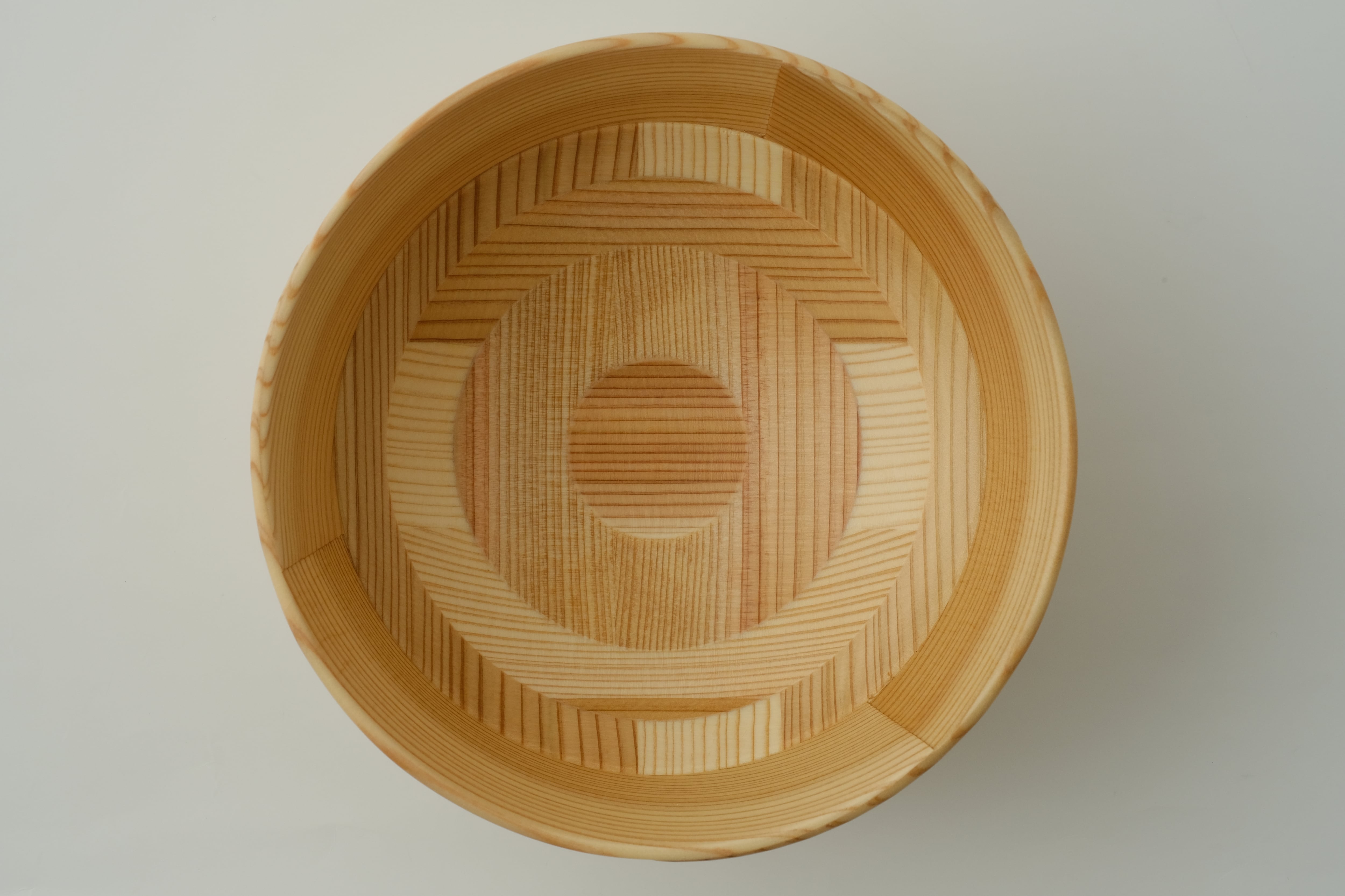 「曲げわっぱ」は、その円が小さいほど曲げるのが難しく、良質な材と高い技術が必要とされます。杉の温かい手触りと驚くほどの軽さを実感いただきたい一品です。