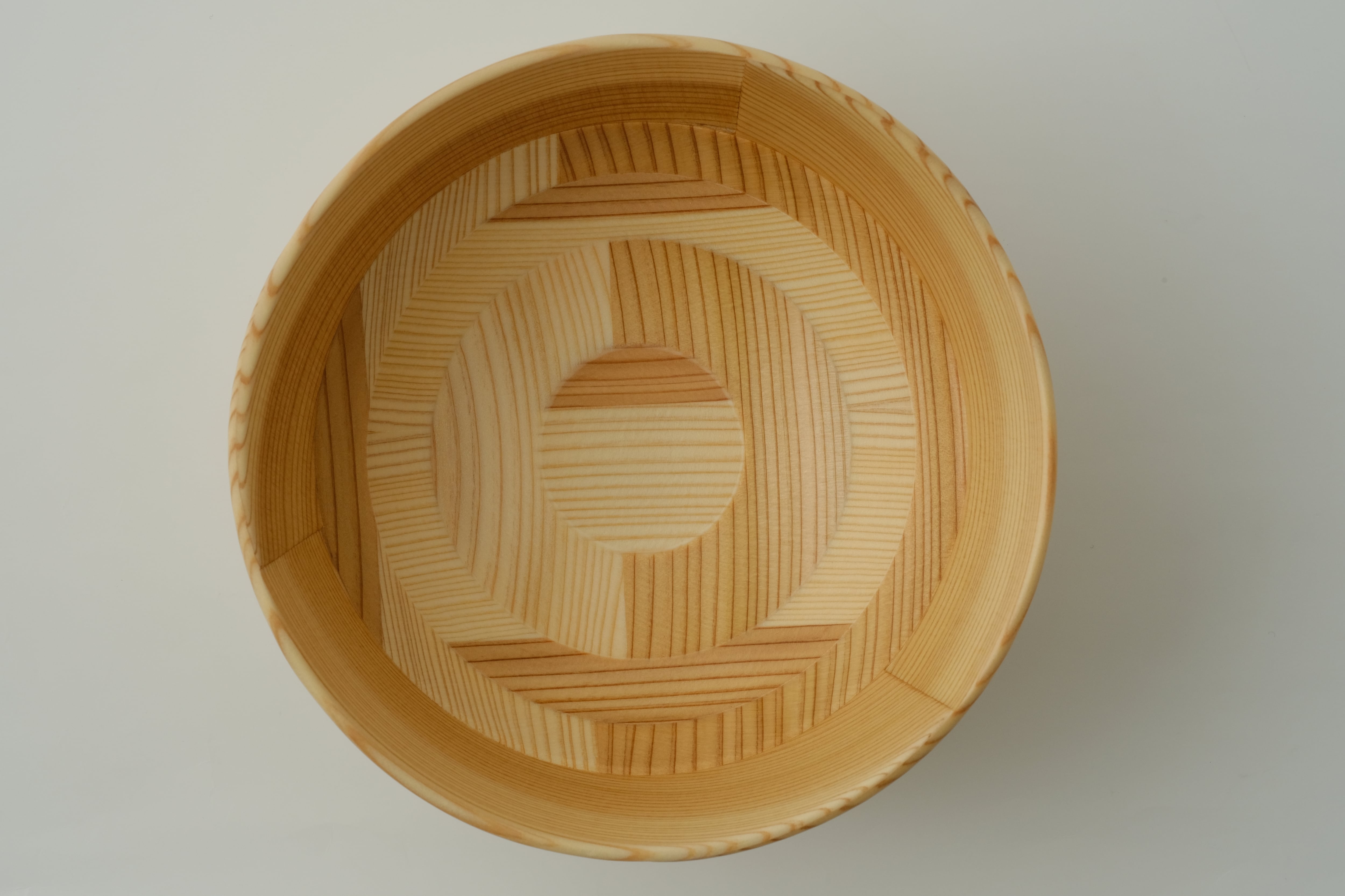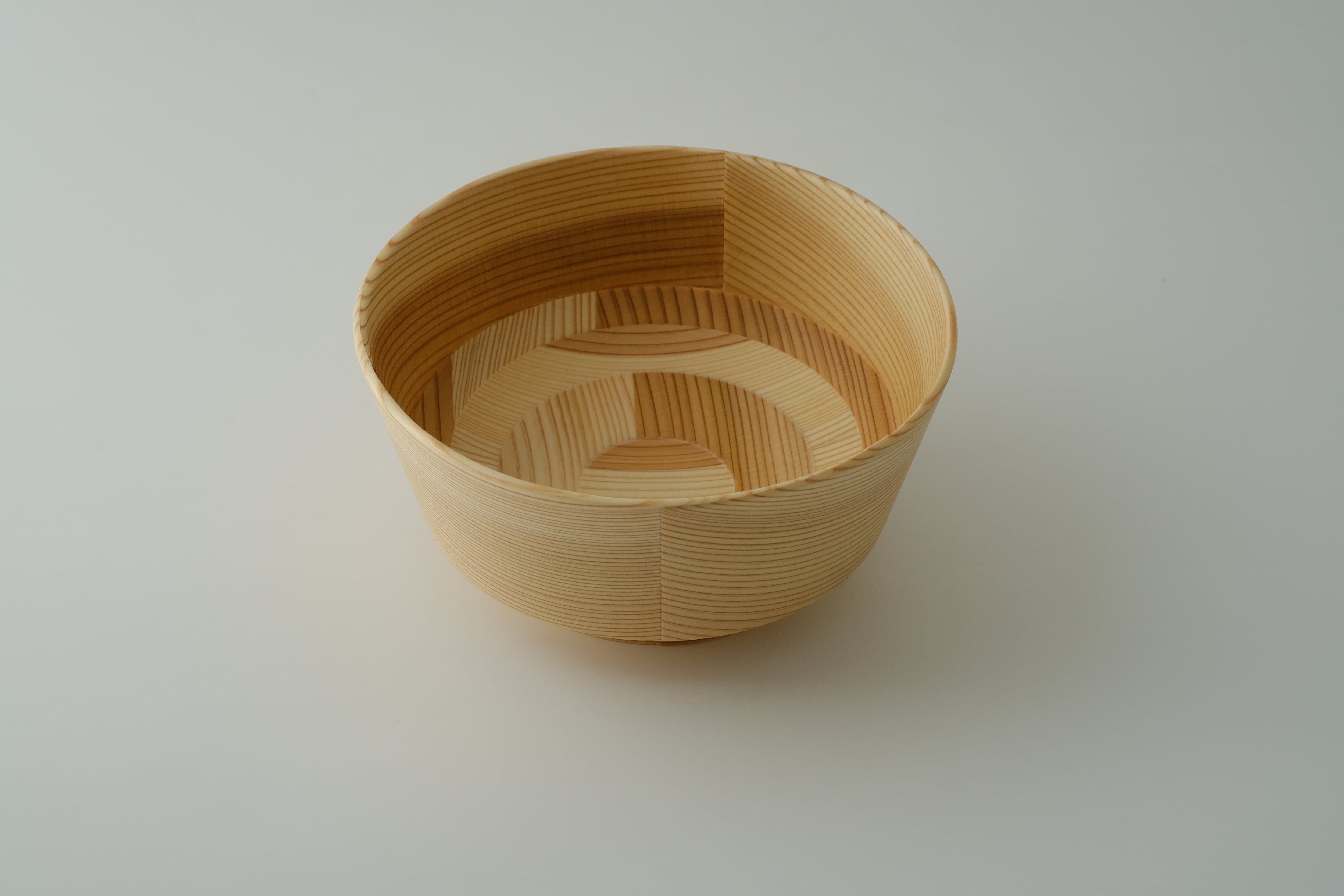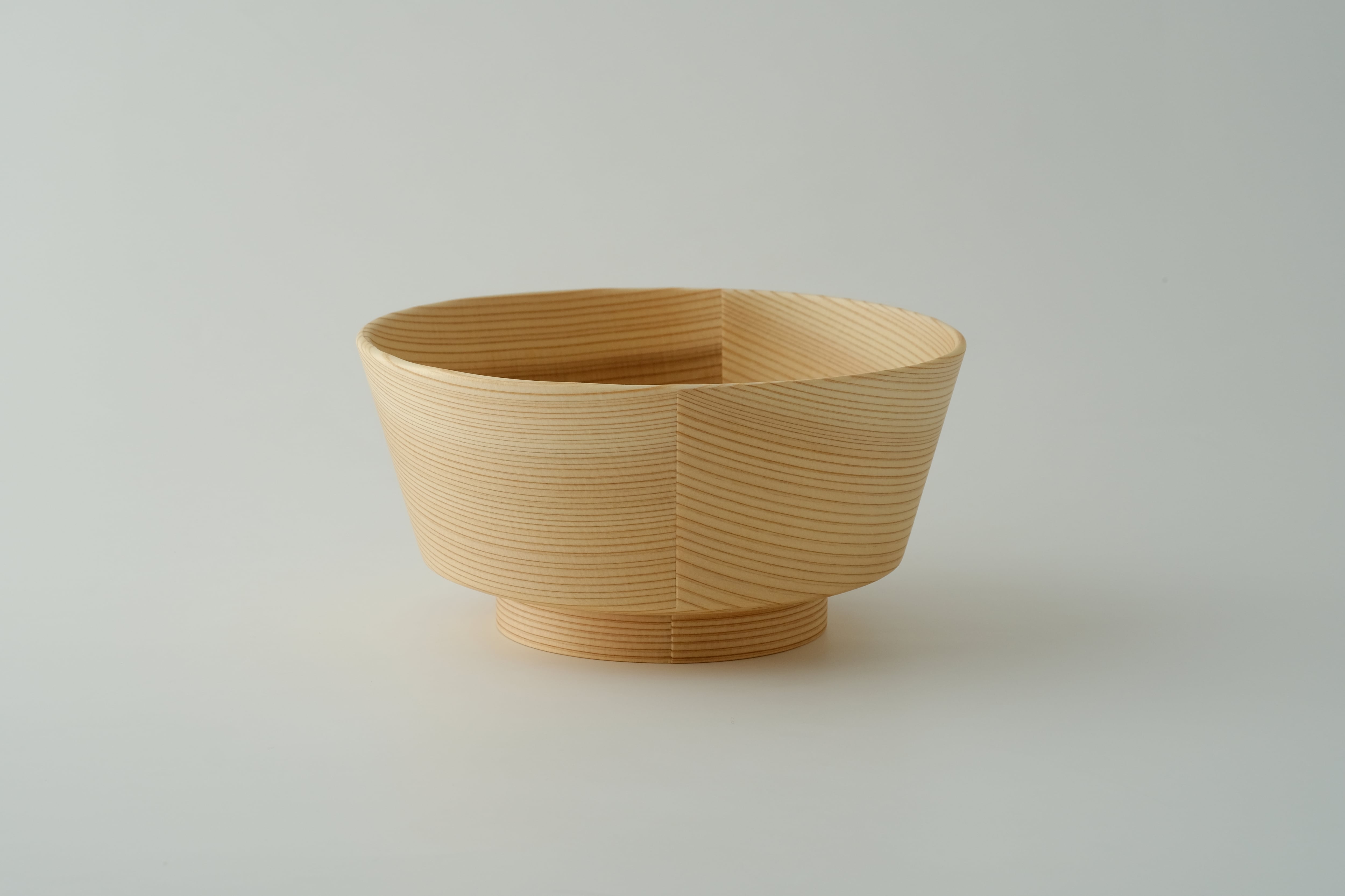 「曲げわっぱ」は、その円が小さいほど曲げるのが難しく、良質な材と高い技術が必要とされます。杉の温かい手触りと驚くほどの軽さを実感いただきたい一品です。