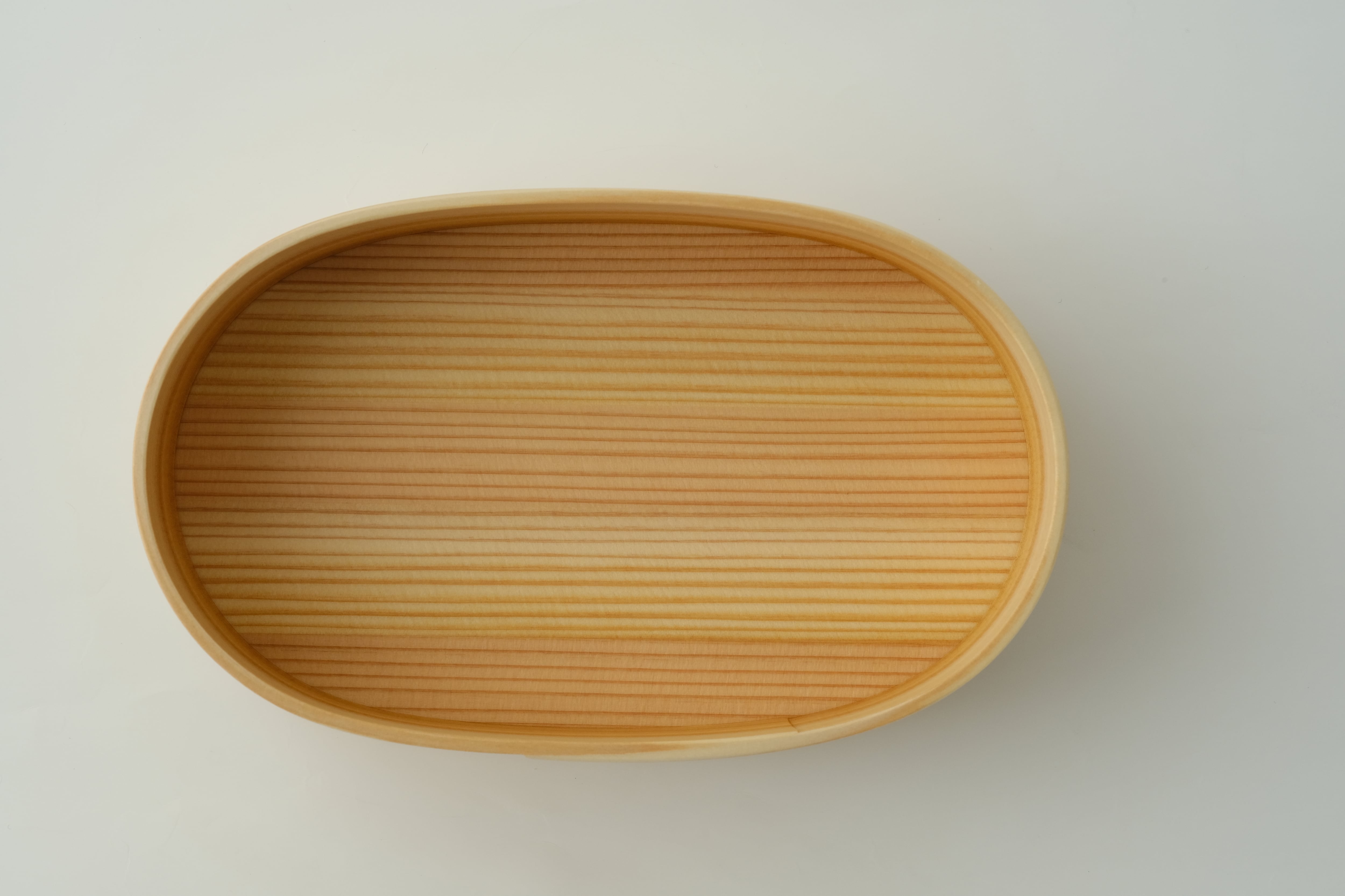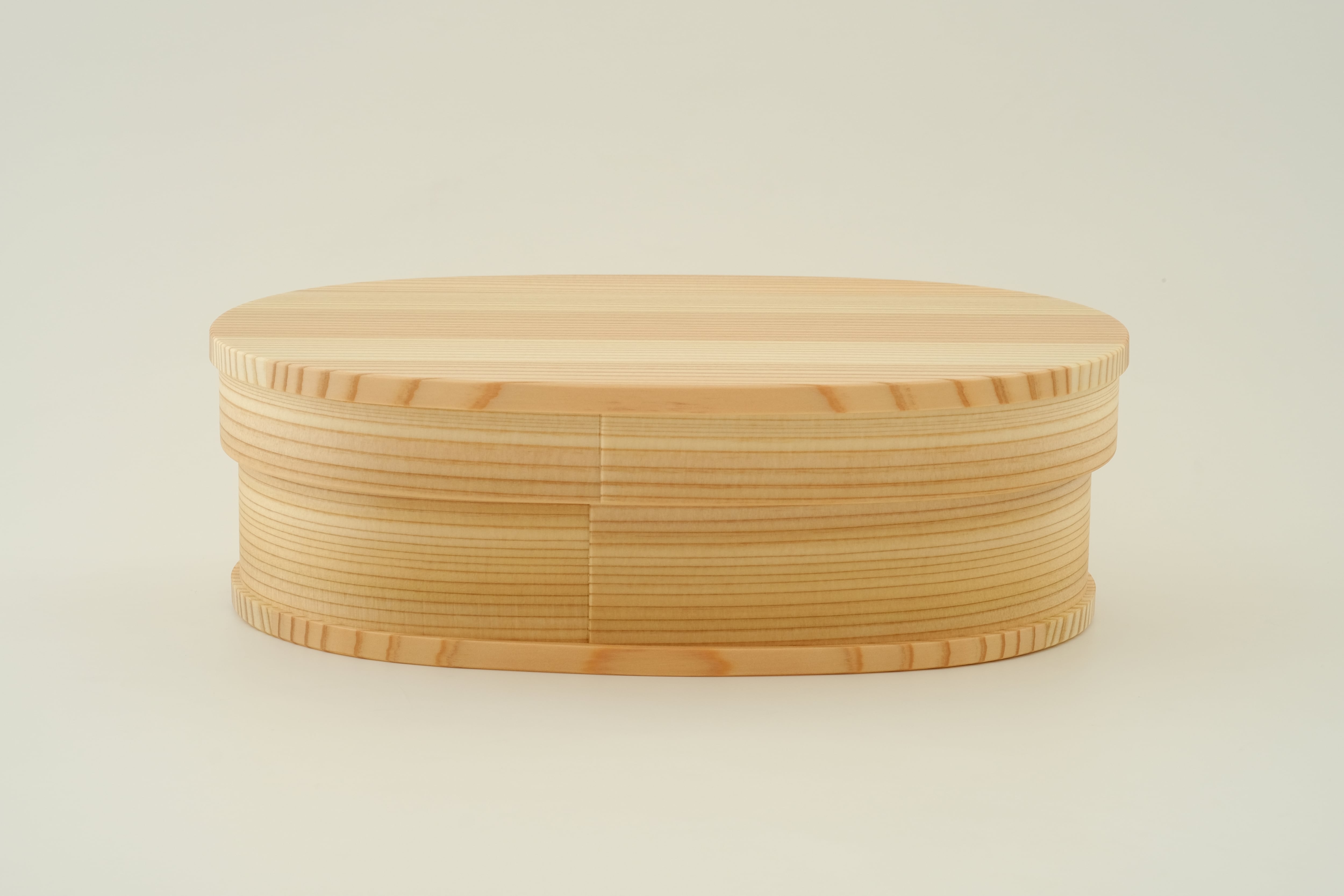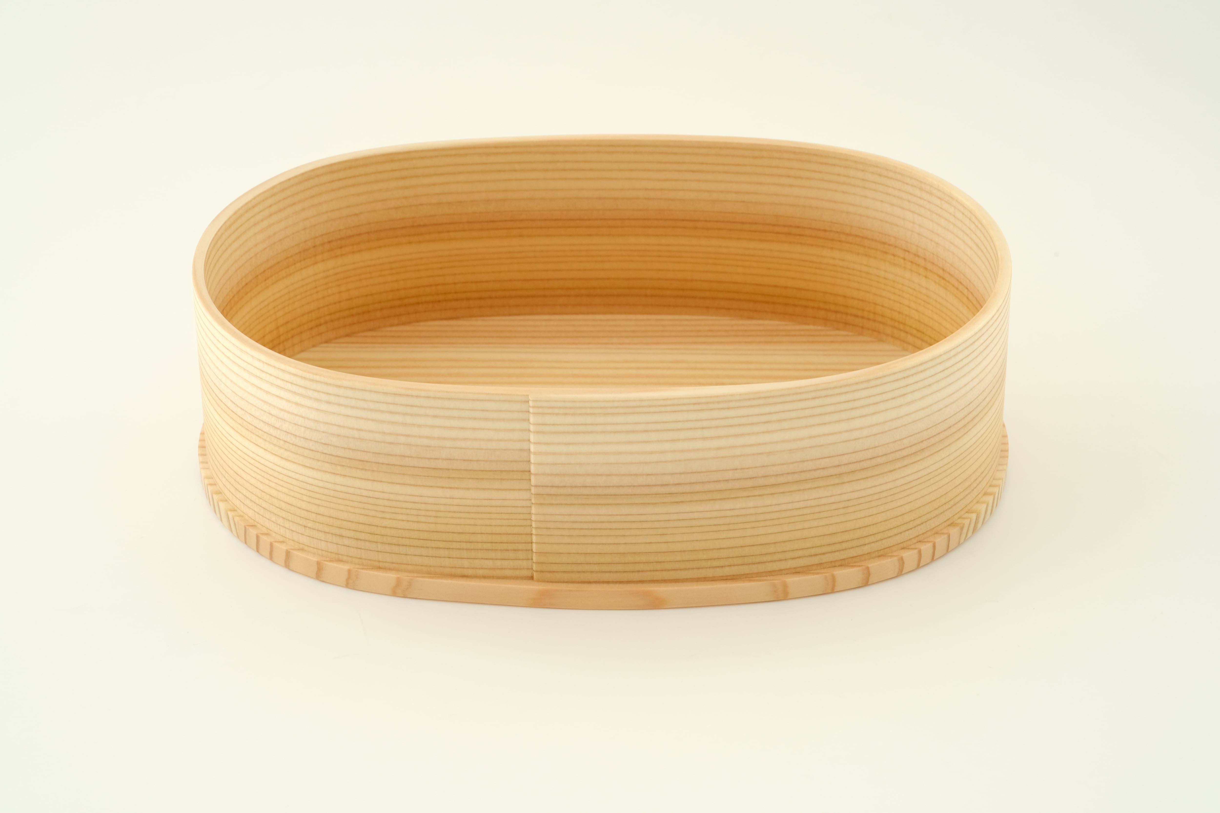 「曲げわっぱ」は、その円が小さいほど曲げるのが難しく、良質な材と高い技術が必要とされます。杉の温かい手触りと驚くほどの軽さを実感いただきたい一品です。