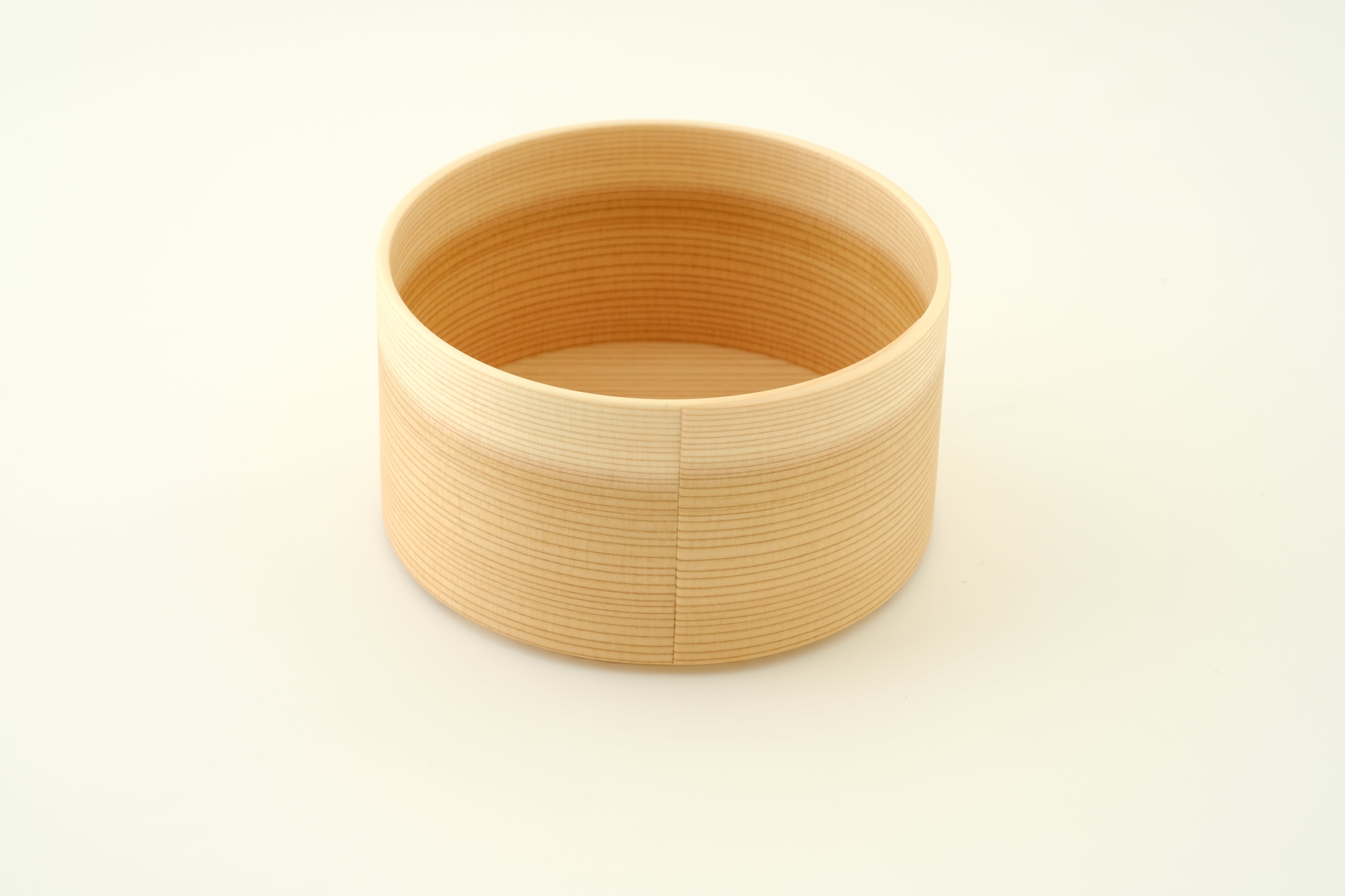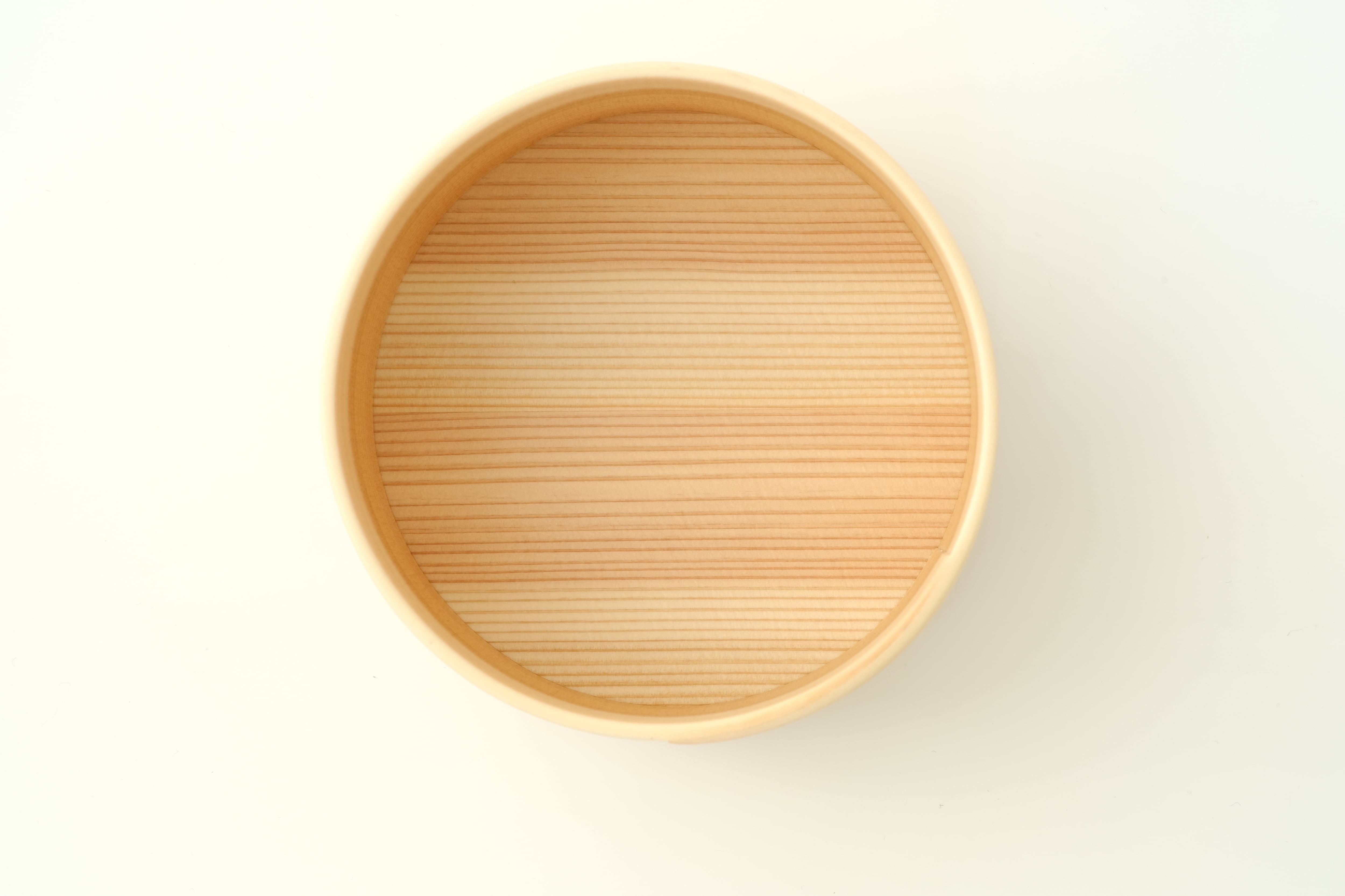 Sサイズは、スープボウルや鍋物の取り分け皿としてはもちろん、おつまみや副菜を盛り付ける器としてお使いいただくのにもちょうど良いサイズ感です。「曲げわっぱ」は、その円が小さいほど曲げるのが難しく、良質な材と高い技術が必要とされます。