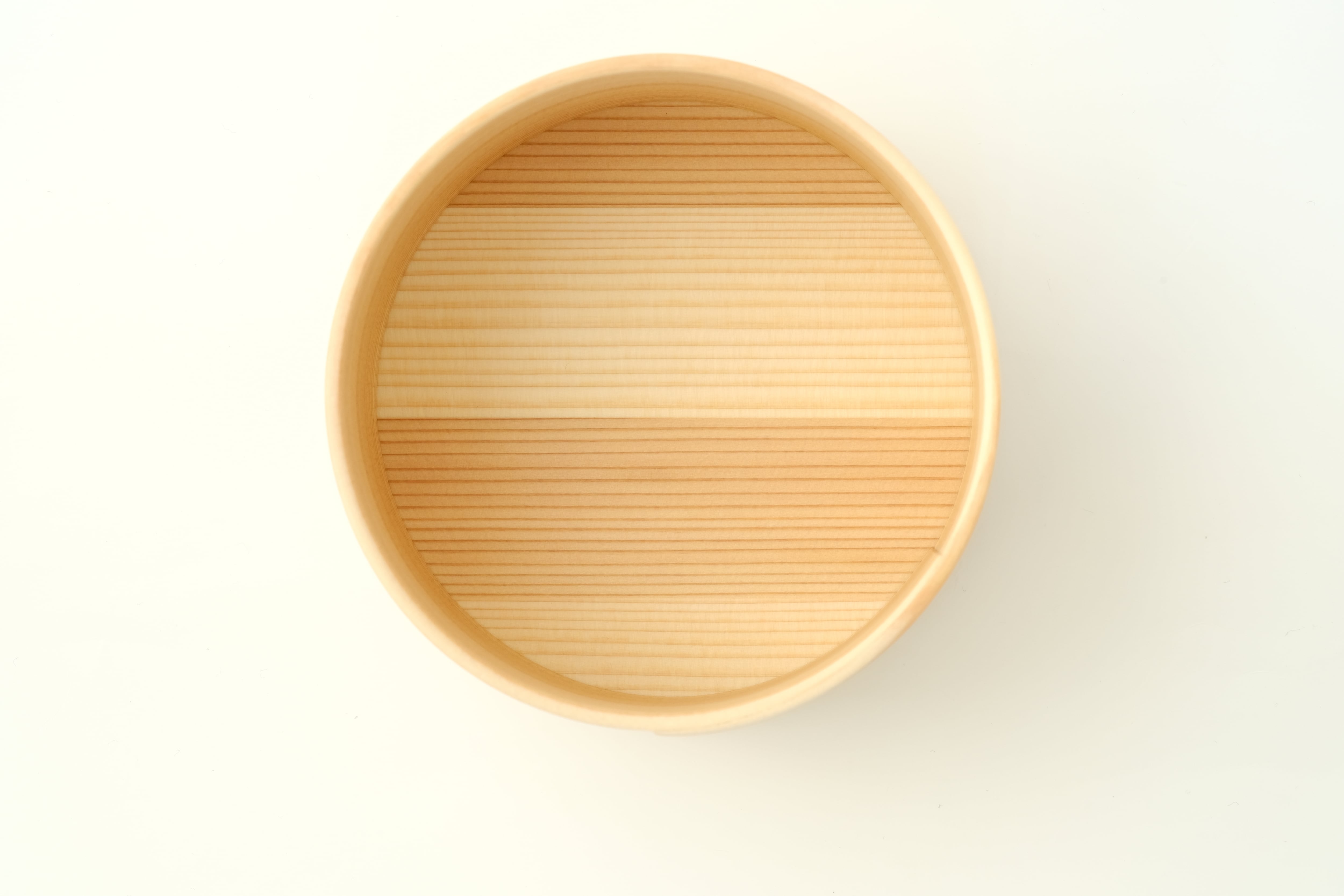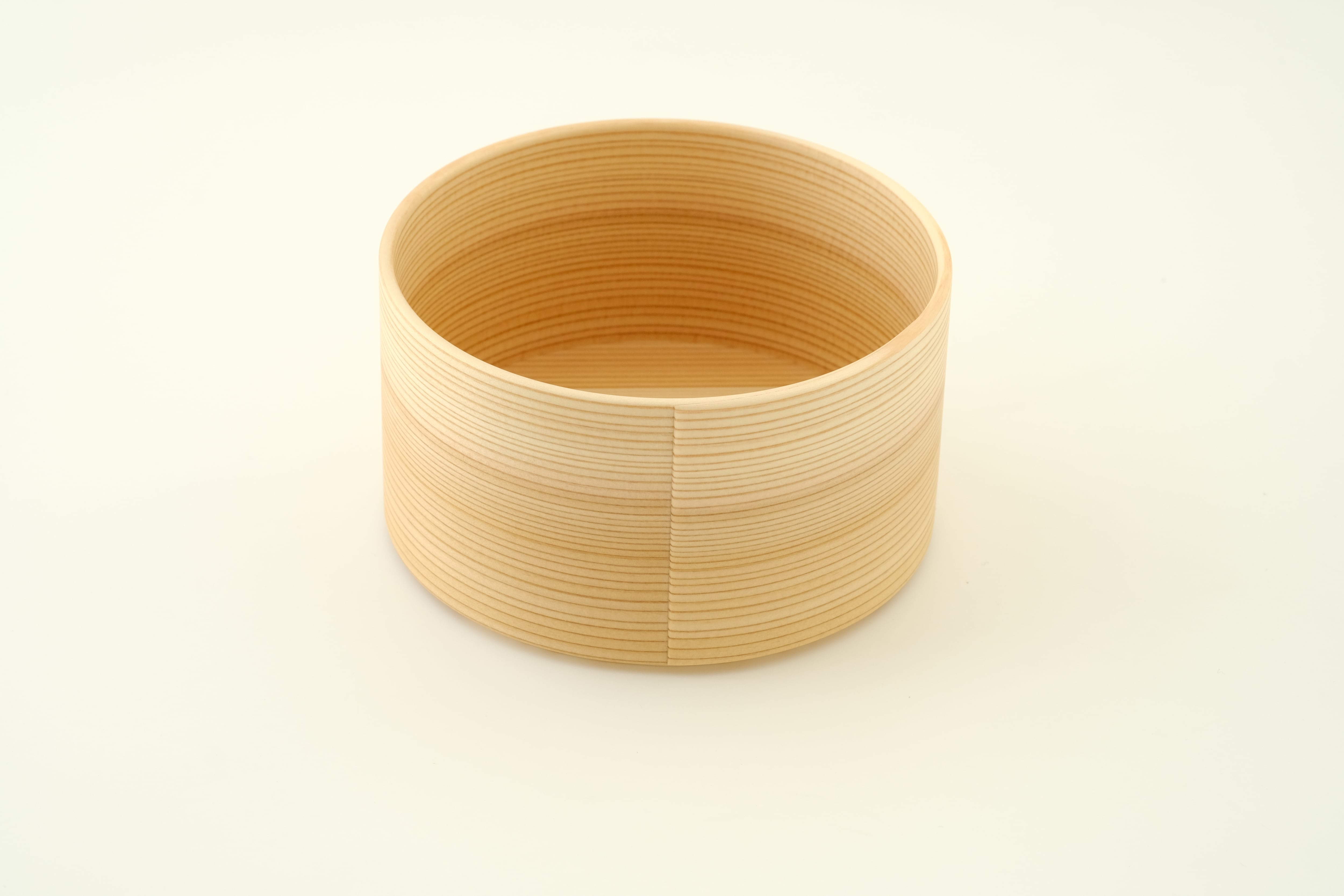 Sサイズは、スープボウルや鍋物の取り分け皿としてはもちろん、おつまみや副菜を盛り付ける器としてお使いいただくのにもちょうど良いサイズ感です。「曲げわっぱ」は、その円が小さいほど曲げるのが難しく、良質な材と高い技術が必要とされます。